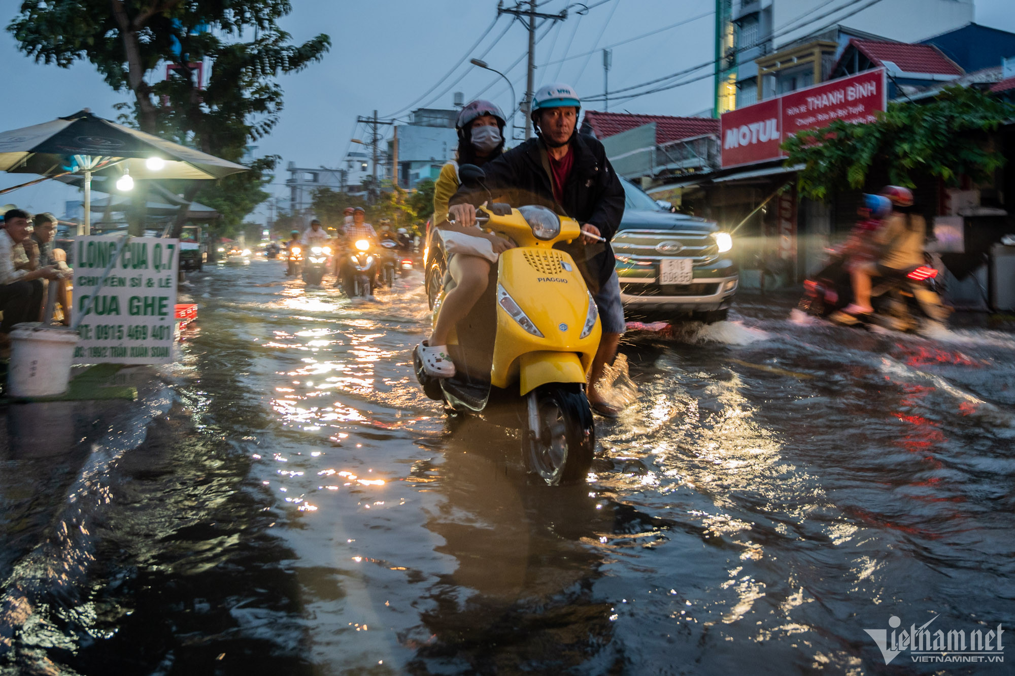 Mưa lớn cả ngày kèm triều cường dâng cao khiến nước dâng lên, mang theo rác thải tràn ngập. Trong ba ngày tới, mực nước ở hầu hết các trạm vùng hạ lưu sông Sài Gòn - Đồng Nai có khả năng xuống nhanh. Mực nước cao trên báo động 3 (1,6m) sẽ duy trì đến hết ngày 3/10.