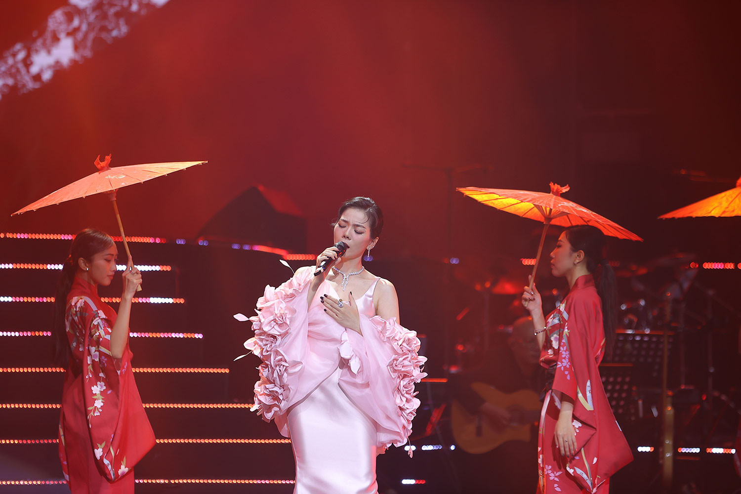 Mở đầu đêm nhạc, Minh Tuyết xuất hiện như một đóa hồng tràn đầy sức sống, kiêu hãnh và quyến rũ với bộ đầm xuyên thấu, bó sát. Không chỉ khiến khán giả trầm trồ vì đường cong gợi cảm sau khi giảm 7kg, nữ ca sĩ như thiêu đốt sân khấu bằng chất giọng da diết và sexy với Để cho em khóc.