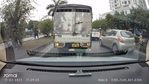 Ô tô bật đèn khẩn cấp khi trời mưa lớn ở Hà Nội. Nguồn video: Ky Nhong Bùi