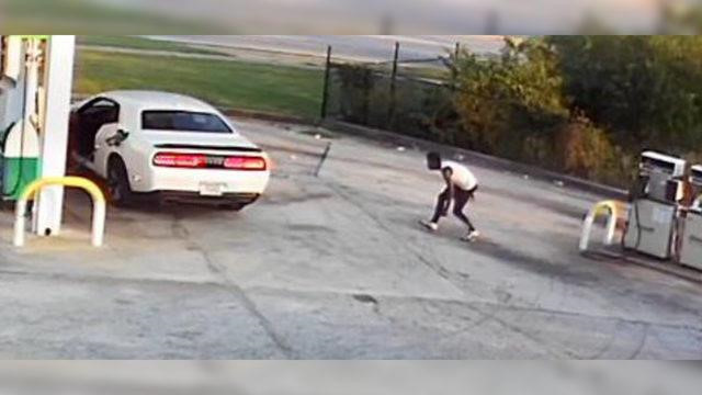 Theo đó, một người đàn ông lợi dụng chủ xe đang bơm xăng định lẻn vào trộm xe. Nhưng xui xẻo cho kẻ này, chủ xe Dodge Challenger đã phát hiện ra ý định rồi chống trả quyết liệt.