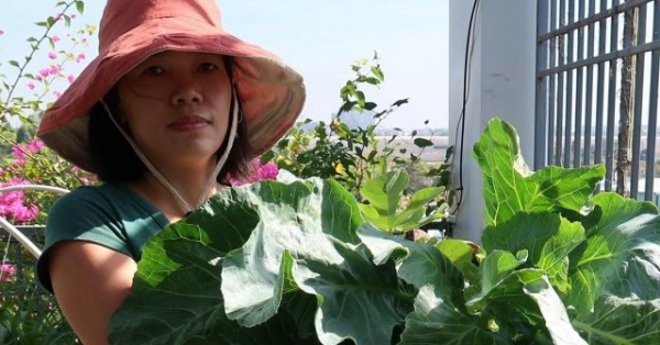 Nữ giám đốc Cần Thơ trồng vườn rau xanh mướt trên sân thượng