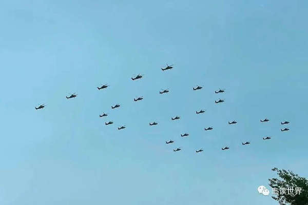 Hàng chục trực thăng và máy bay chiến đấu của quân đội Trung Quốc đã xếp thành nhiều chữ số khổng lồ trên bầu trời ở miền bắc nước này.
