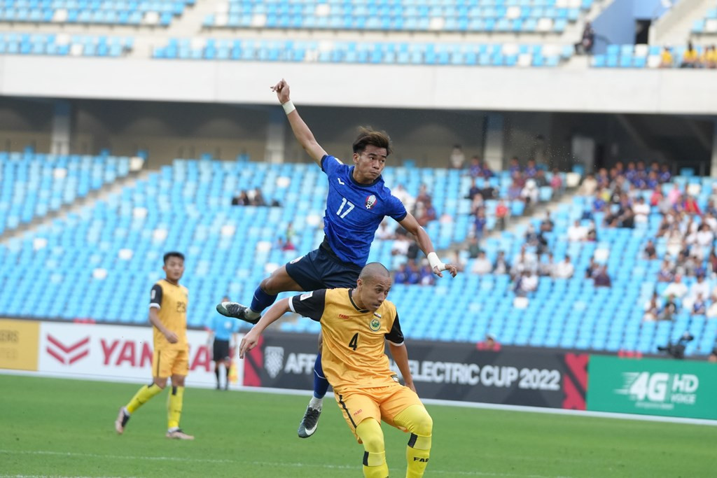 Cơ hội đáng kể đầu tiên dành cho chủ nhà, tuy nhiên cú đánh đầu của Reung Bunheing lại chưa đủ hiểm hóc để có thể đánh bại thủ môn bên phía Brunei.