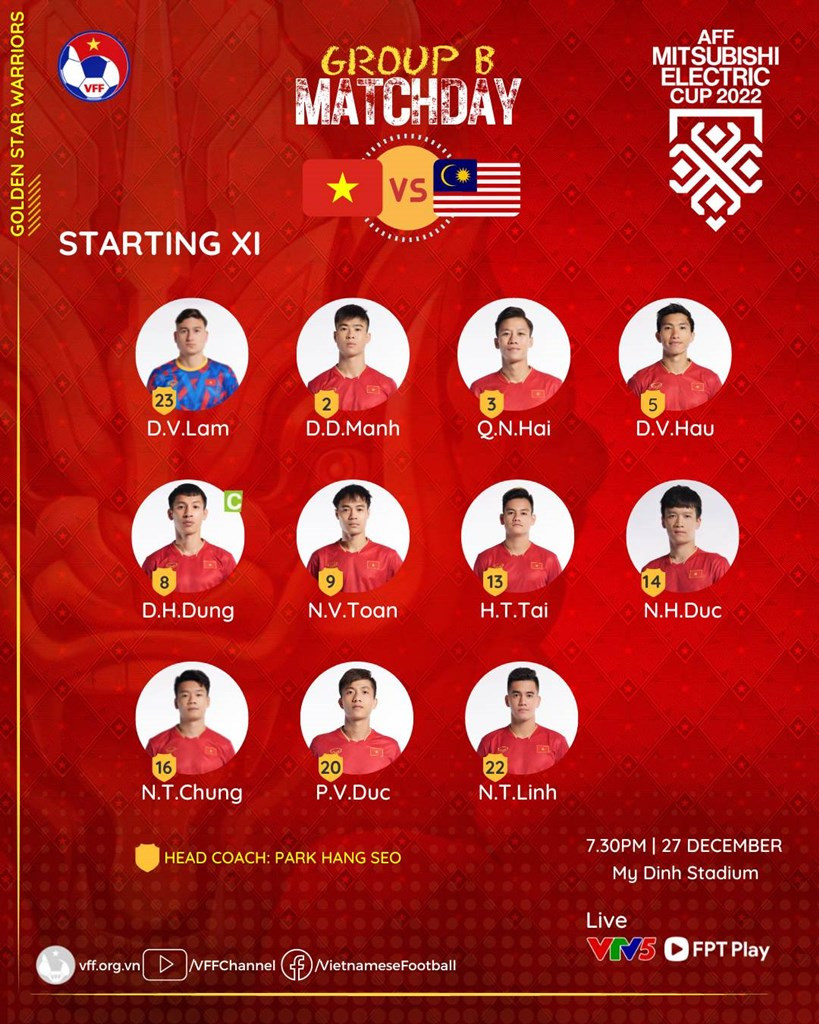 Dưới thời HLV Park Hang Seo, "Những chiến binh sao vàng" đã đánh bại Malaysia tới 5 lần và chỉ hòa đúng 1 trận. Năm ngoái, Việt Nam thắng 3-0 đầy thuyết phục trước Malaysia, cũng tại AFF Cup. Tháng 5 vừa rồi tại SEA Games 2022, U23 Việt Nam cũng thắng U23 Malaysia ở vòng bán kết của môn bóng đá nam Đại hội.