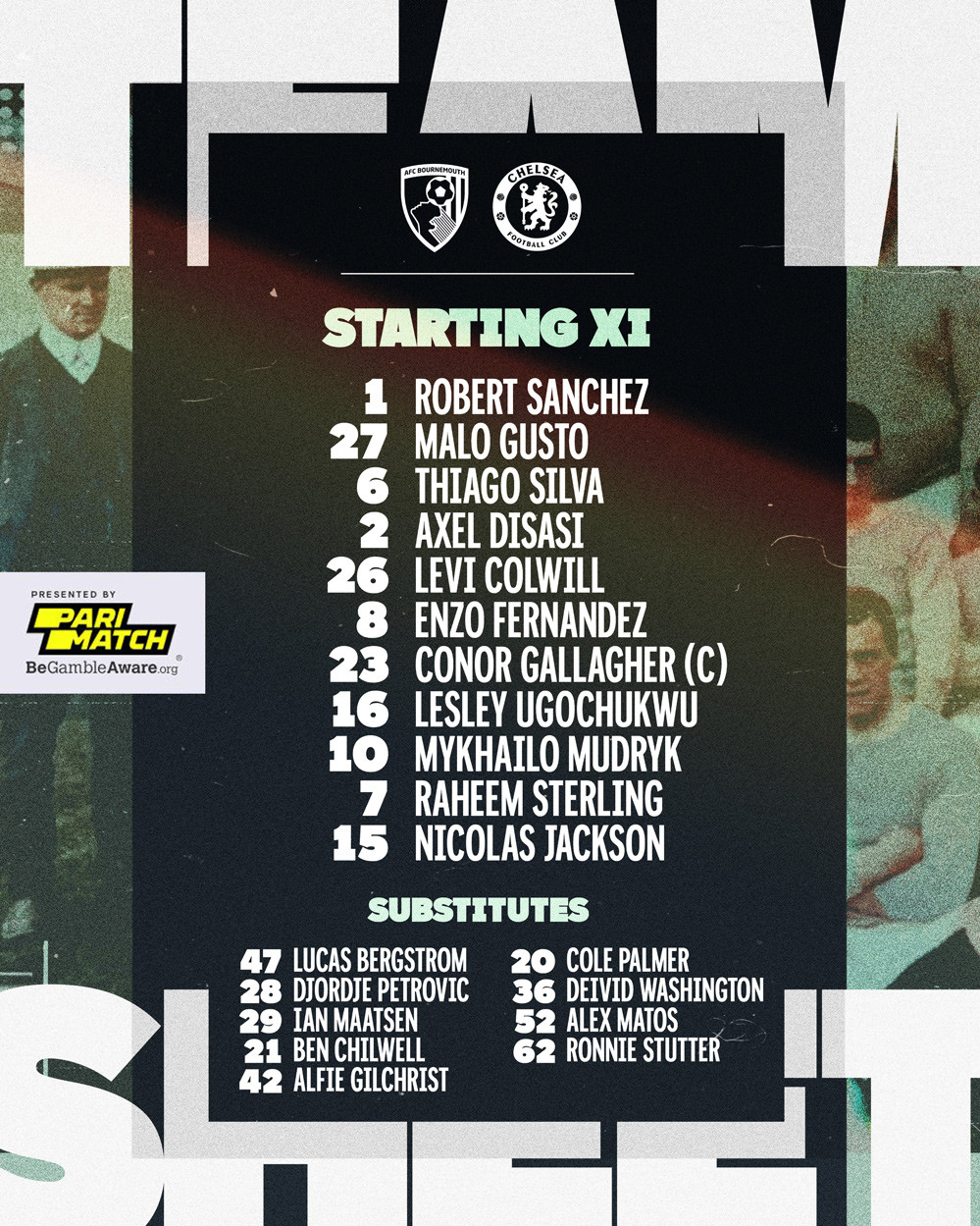 Chelsea: Sanchez, Disasi, Silva, Colwill, Gusto, Fernandez, Ugochukwu, Gallagher, Mudryk, Sterling, Jackson.