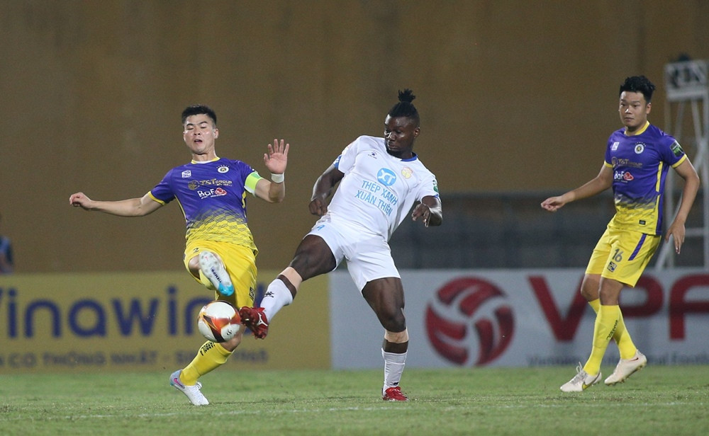 Nam Định quyết tâm kiếm điểm, trong khi Hà Nội kiểm soát tốt thế trận và bịt mọi ngả đường vào khung thành của thủ môn Tấn Trường.
