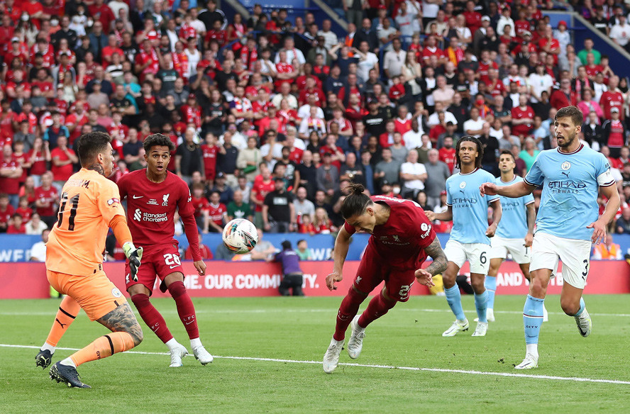 Darwin Nunez có cơ hội lẻn xuống đối mặt Ederson. Tiếc rằng, cú đá cuối cùng không thắng được thủ môn người Brazil.