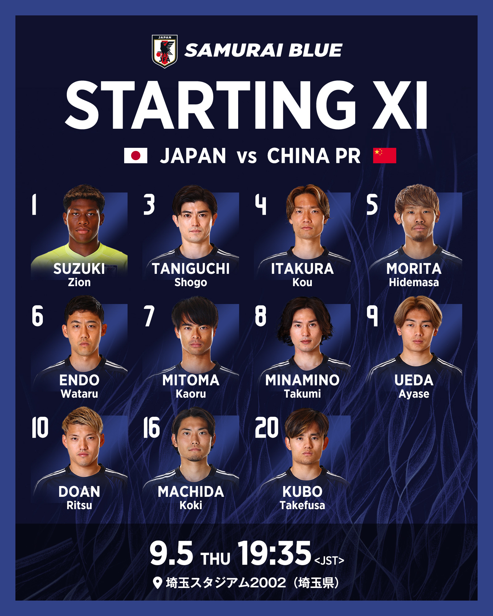 Nhật Bản: Suzuki; Taniguchi, Ikatura, Machida; Doan, Endo, Morita; Kubo, Mitoma, Minamino, Ueda.