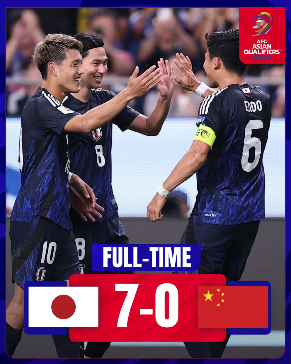 Bàn thắng (7-0, Kubo): Nhật Bản chưa buông tha cho đối thủ. Phút bù giờ cuối cùng, Kubo nã đại bác chân trái sấm sét ghi bàn thứ 7 cho Nhật Bản.