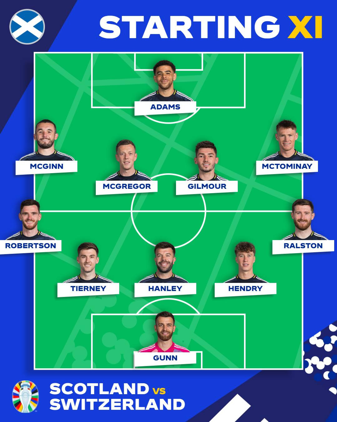 Đội hình xuất phát Scotland vs Thụy Sĩ