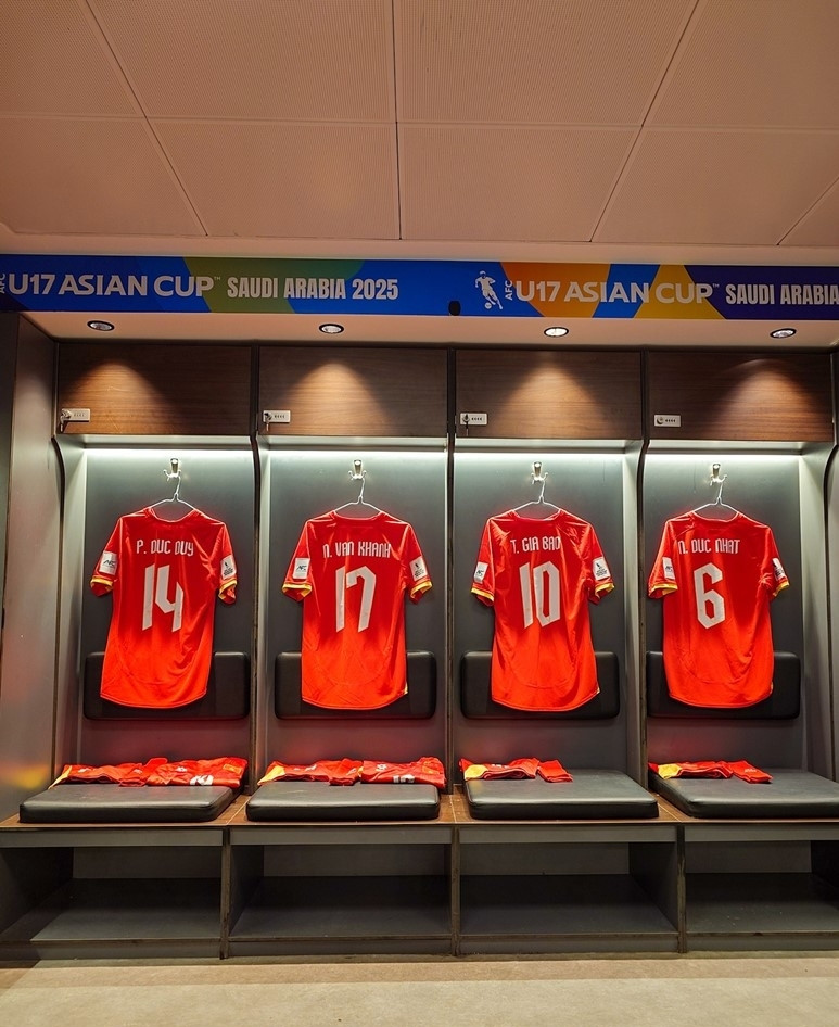 Phòng thay đồ U17 Việt Nam trước trận đấu