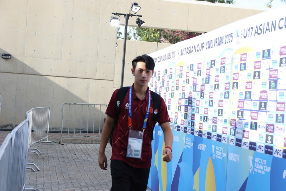 Các cầu thủ U17 Việt Nam đến sân chuẩn bị cho trận đấu