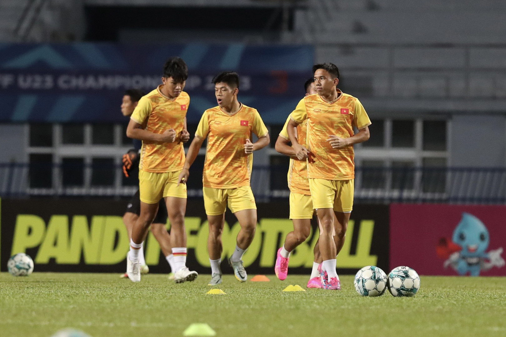 Trên sân, U23 Việt Nam có 2 cầu thủ 18 tuổi (Bá Đạt, Nguyên Hoàng) và 2 người mới 17 tuổi (Đăng Dương, Long Vũ).