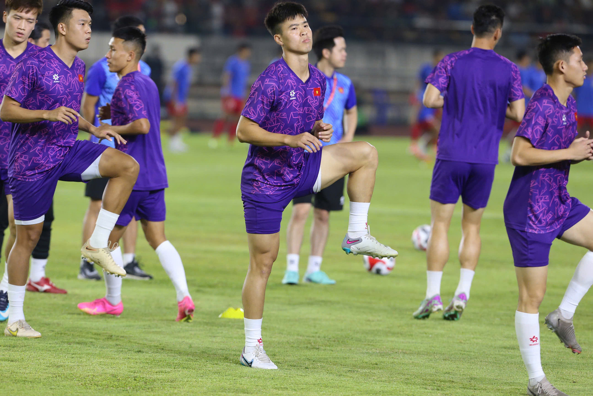 Các cầu thủ Việt Nam khởi động trước trận đấu
