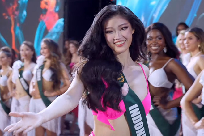 Sau màn đồng diễn, Top 20 gồm: Hà Lan, Thái Lan, Bỉ, Nam Phi, Philippines, Ấn Độ, Puerto Rico, Brazil, Zimbabwe, Mỹ, Albania, Bulgaria, Canada, Anh, Việt Nam, Mauritius, Kazakhstan, Nga, Venezuela, Indonesia (khán giả bình chọn) tự tin bước ra sân khấu trong những bộ đồ tắm độc đáo và thể hiện kỹ năng catwalk chuyên nghiệp.