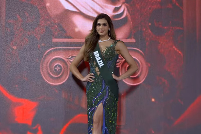 Top 12 gồm các thí sinh từ Albania, Brazil, Indonesia, Kazakhstan, Hà Lan, Philippines, Puerto Rico, Nga, Nam Phi, Thái Lan, Venezuela và Việt Nam cùng tham gia phần thi trang phục dạ hội. Các người đẹp tỏa sáng với những chiếc váy dạ hội kết hợp tinh tế giữa ren và đá quý, tôn lên vẻ đẹp lộng lẫy của từng thí sinh.