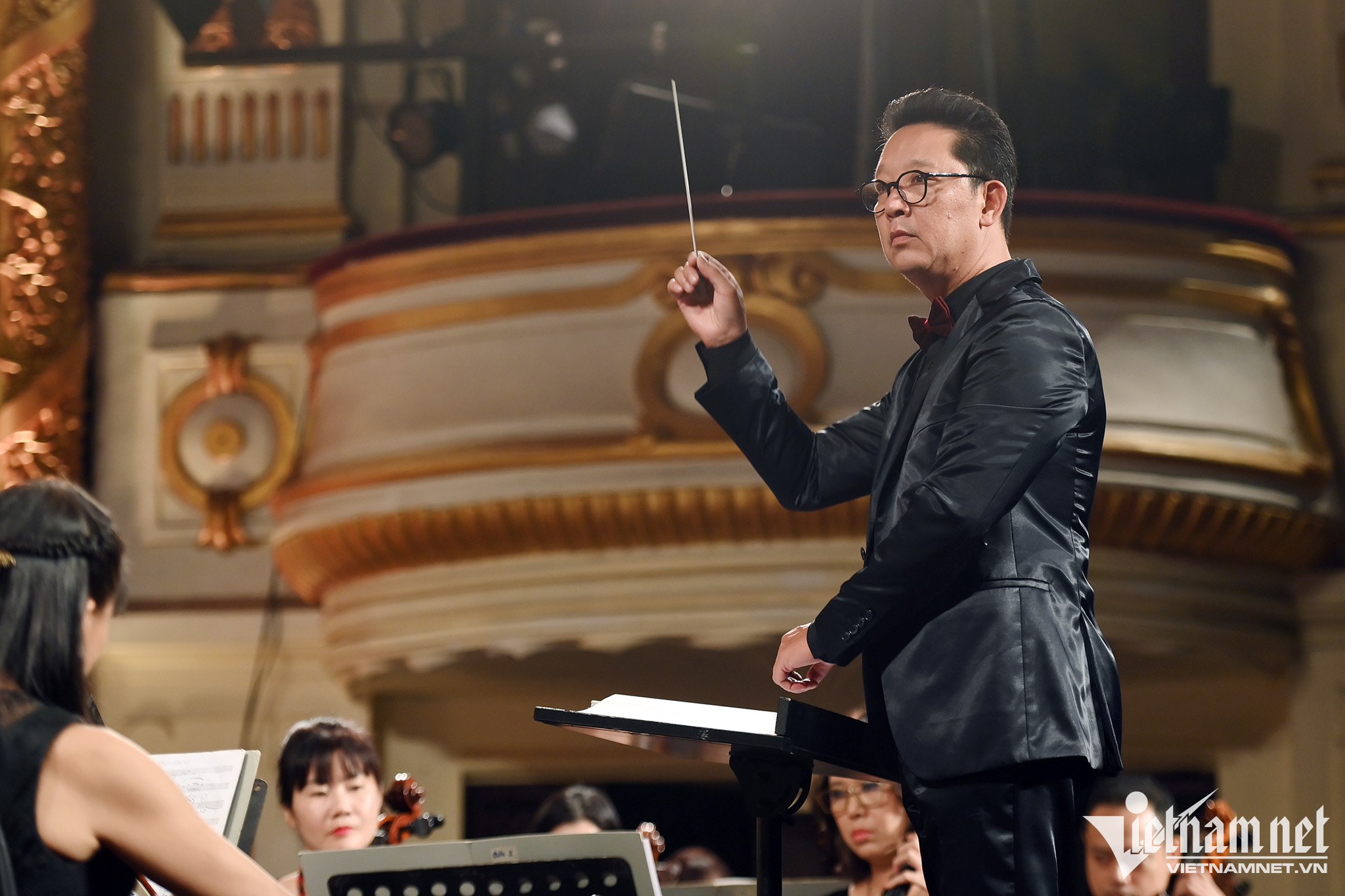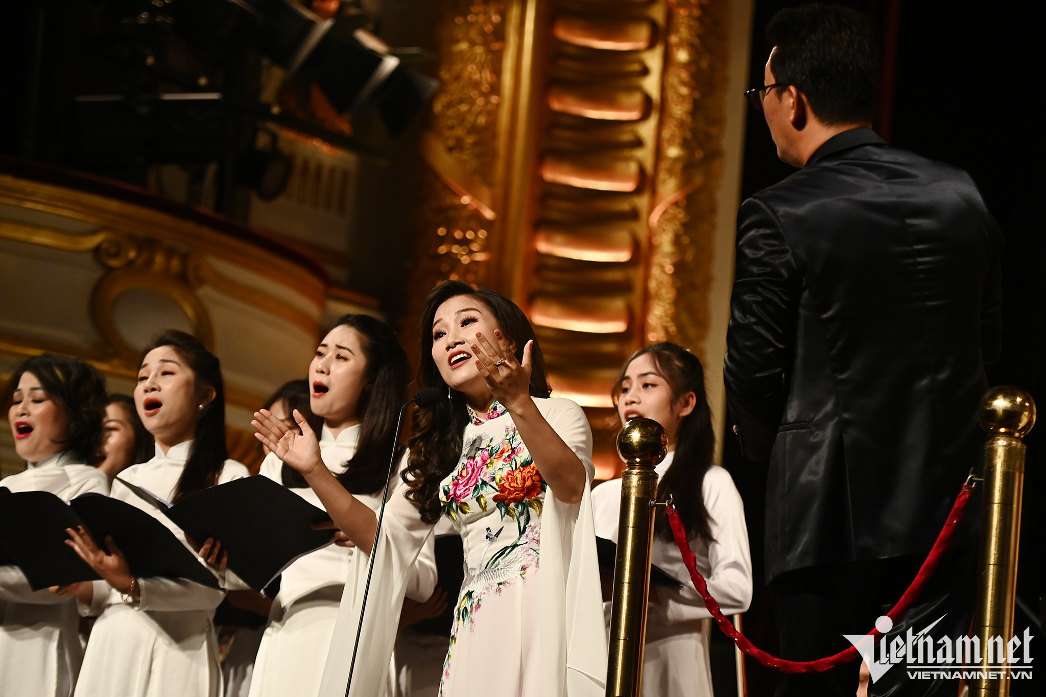 Dàn nhạc Giao hưởng Việt Nam trình diễn tác phẩm Người về đem tới ngày vui (Nhạc sĩ Trọng Bằng) dưới sự chỉ huy của nhạc trưởng Lê Phi Phi.