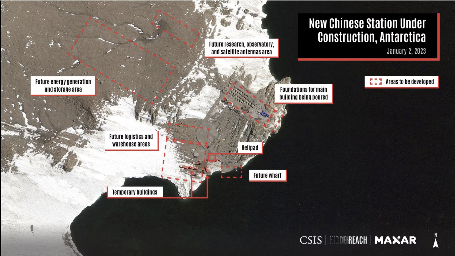 CSIS đã sử dụng hình ảnh vệ tinh chụp từ tháng 1 nhằm xác định các cơ sở hỗ trợ mới, các tòa nhà tạm thời, một bãi đáp trực thăng và phần móng để xây một tòa nhà tại trạm nghiên cứu rộng 5.000m2. Việc xây dựng dự kiến hoàn tất vào năm 2024.