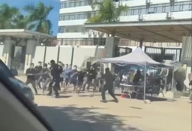 Hình ảnh hàng chục người tháo chạy khỏi Casino Rich World (Campuchia) được đăng tải trên mạng xã hội. |