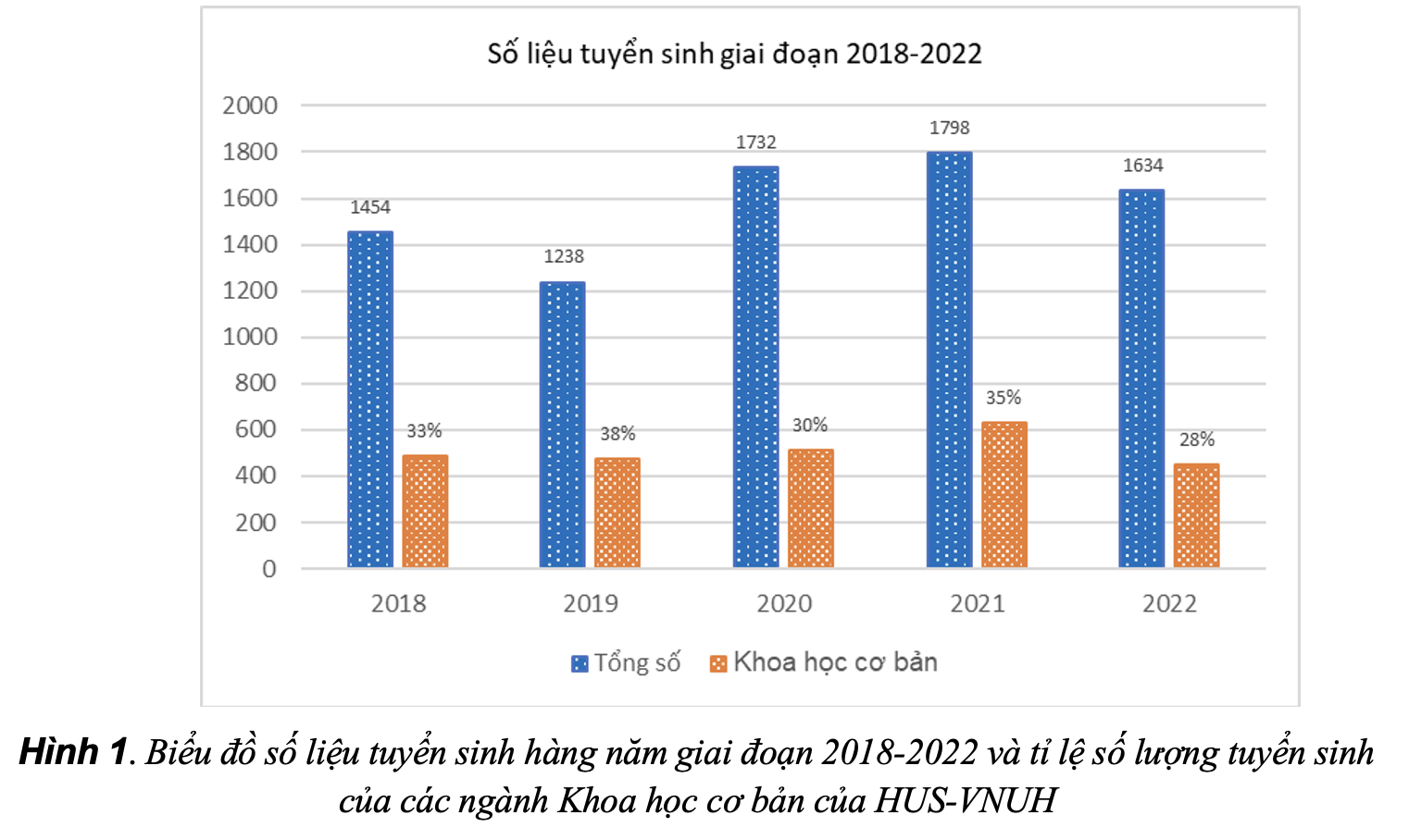 Số liệu cho thấy trường duy trì tỷ lệ tuyển mới các ngành khoa học cơ bản vào khoảng 30% so với tổng chỉ tiêu tuyển sinh hằng năm. Năm 2022, có giảm nhẹ về số lượng và tỉ lệ so với hai năm trước. Một số ngành khoa học cơ bản tiếp tục rơi vào tình trạng khó tuyển sinh.