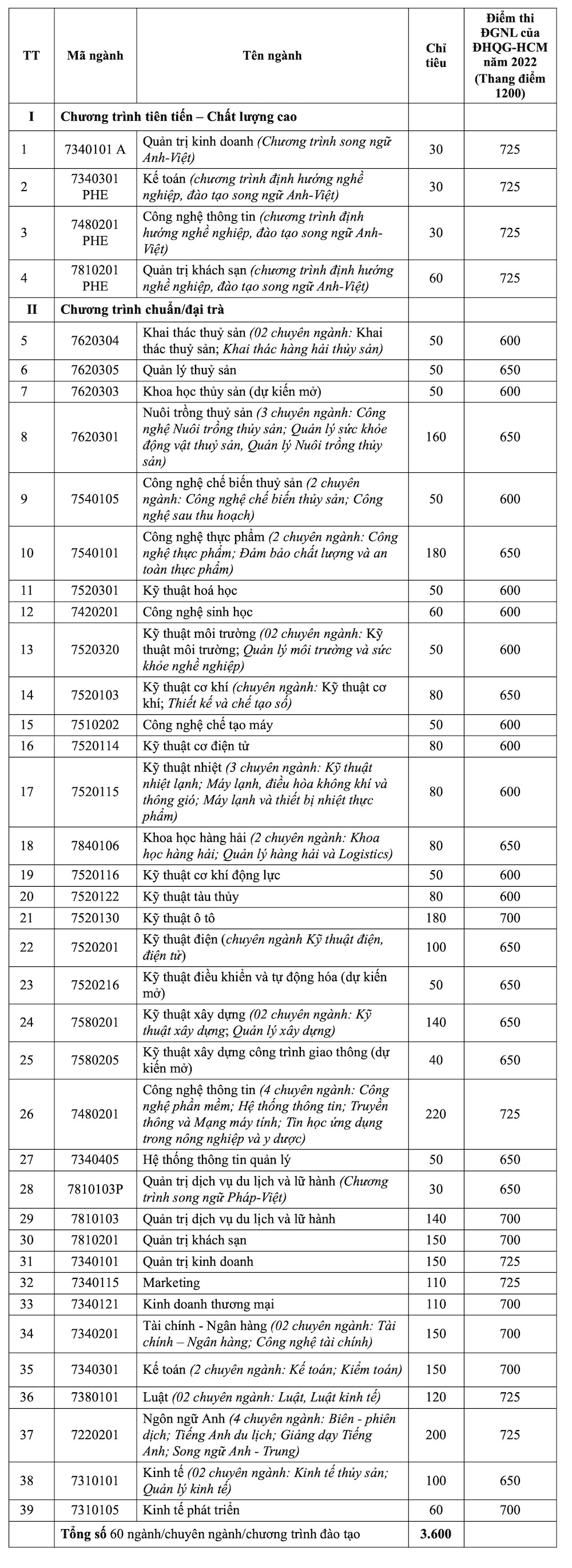 Ngoài phương thức, xét tuyển dựa vào điểm thi đánh giá năng lực của Đại học Quốc gia TP. HCM năm 2022 tối đa 25% tổng chỉ tiêu, Trường ĐH Nha Trang còn xét tuyển dựa vào điểm thi THPT năm 2022, tối đa 30% tổng chỉ tiêu.