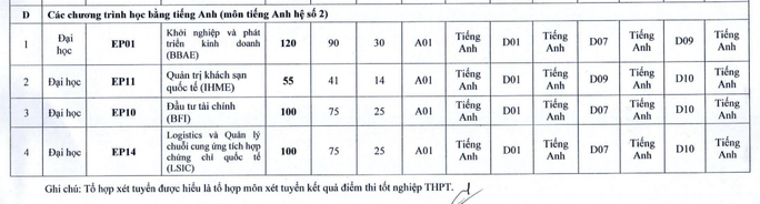 Chỉ tiêu tuyển sinh và tổ hợp xét tuyển cụ thể như sau: