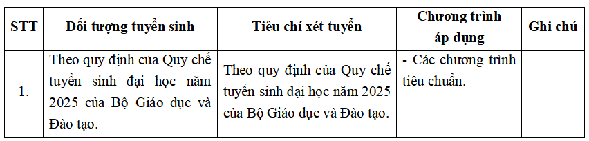 2. Xét tuyển có sử dụng kết quả thi tốt nghiệp THPT năm 2025