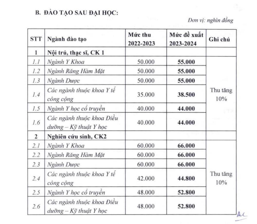 Đối với đào tạo sau đại học tăng 4-6 triệu tuỳ từng ngành. Riêng học phí các khoá tuyển sinh từ 2020 cao nhất là 77 triệu/năm, cụ thể như sau: