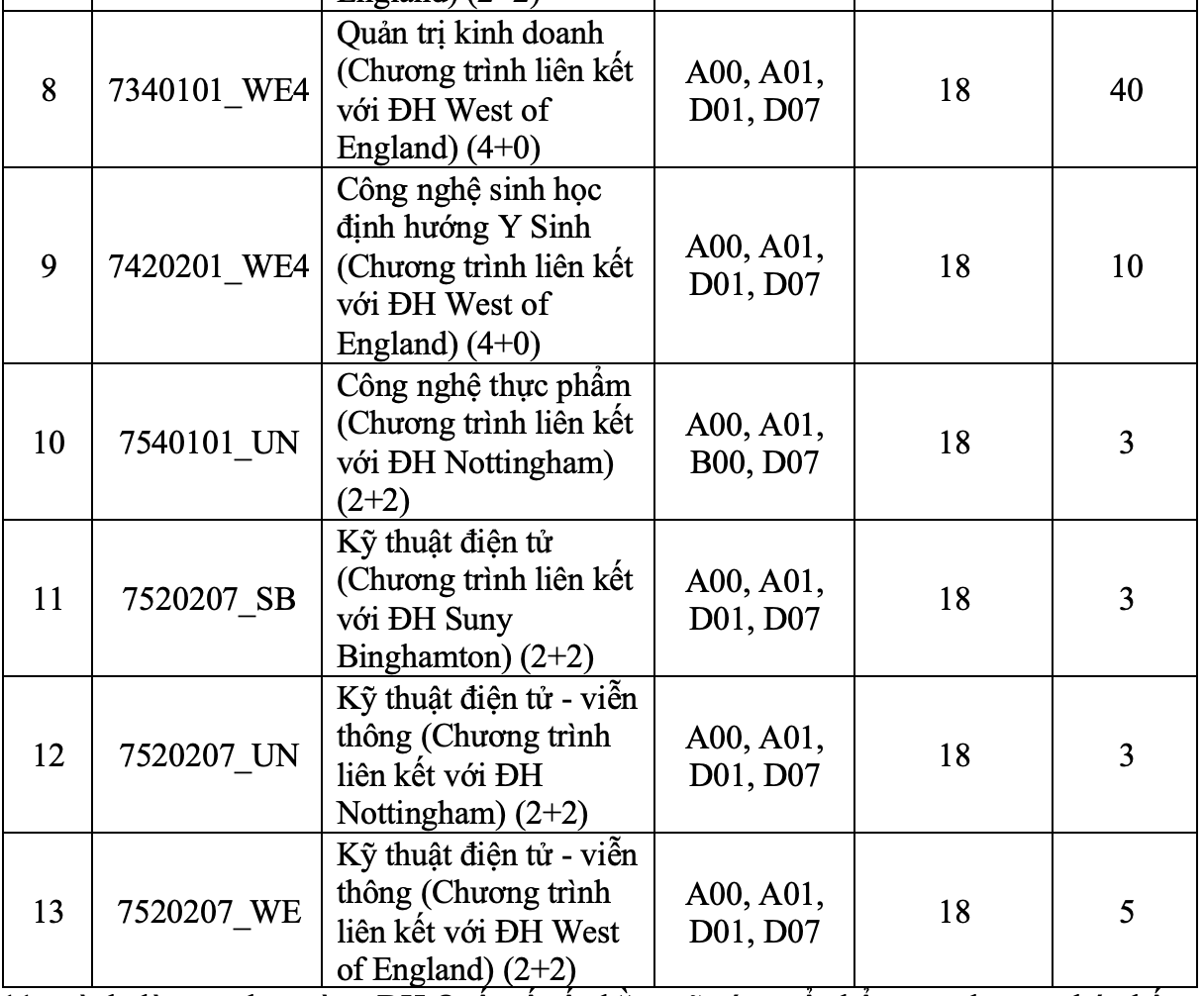13 ngành đào tạo liên kết với ĐH nước ngoài xét tuyển từ kết quả thi tốt nghiệp 108 chỉ tiêu: