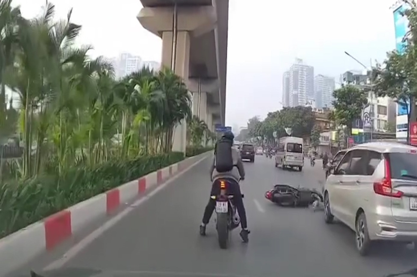 Trước đó, mạng xã hội chia sẻ đoạn video ghi lại hình ảnh nam thanh niên đi mô tô mang biển số 29M1-999.XX va chạm với xe máy khác trên đường Nguyễn Trãi (quận Thanh Xuân). Sau va chạm, người phụ nữ ngã ra đường và bị ô tô đi cùng chiều đâm trúng.