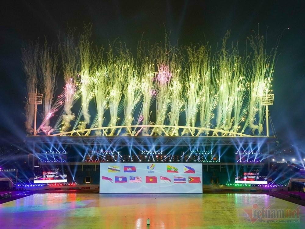 Tờ The Straits Times (Singapore) thông tin: "SEA Games trở lại Việt Nam sau gần 20 năm với màn trình diễn ánh sáng rực rỡ kết hợp bắn pháo hoa ngoạn mục trước sự chứng kiến của hơn 20.000 khán giả trên sân Mỹ Đình."