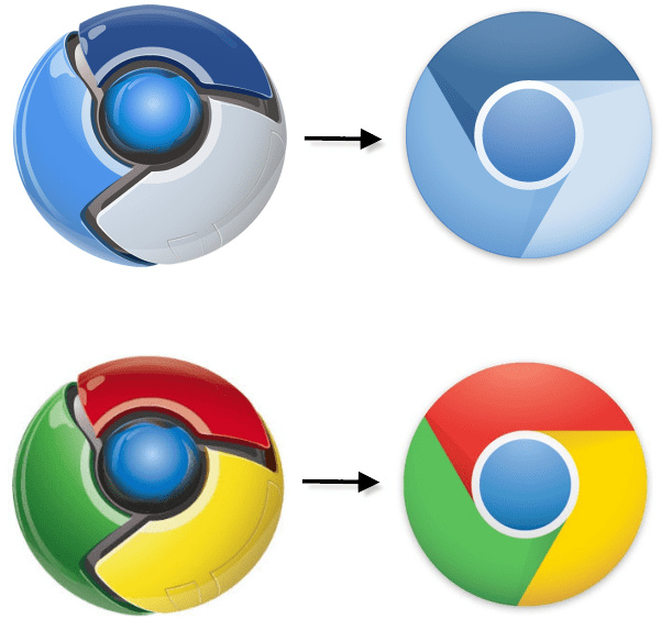 Ngay từ đầu, Chrome đã có logo 3D. Đến tháng 3 năm 2011, thiết kế đó trông khá lỗi thời. Apple bắt đầu xu hướng đưa các biểu tượng phẳng lên iOS và Google không muốn thiết kế của họ có vẻ lạc lõng. Google đã thực hiện thay đổi nhỏ trong thiết kế, nhưng có tác động khá lớn. Vẫn giữ nguyên cách phối màu, Google đã làm phẳng logo của Chrome để mang lại một cái nhìn hiện đại hơn.