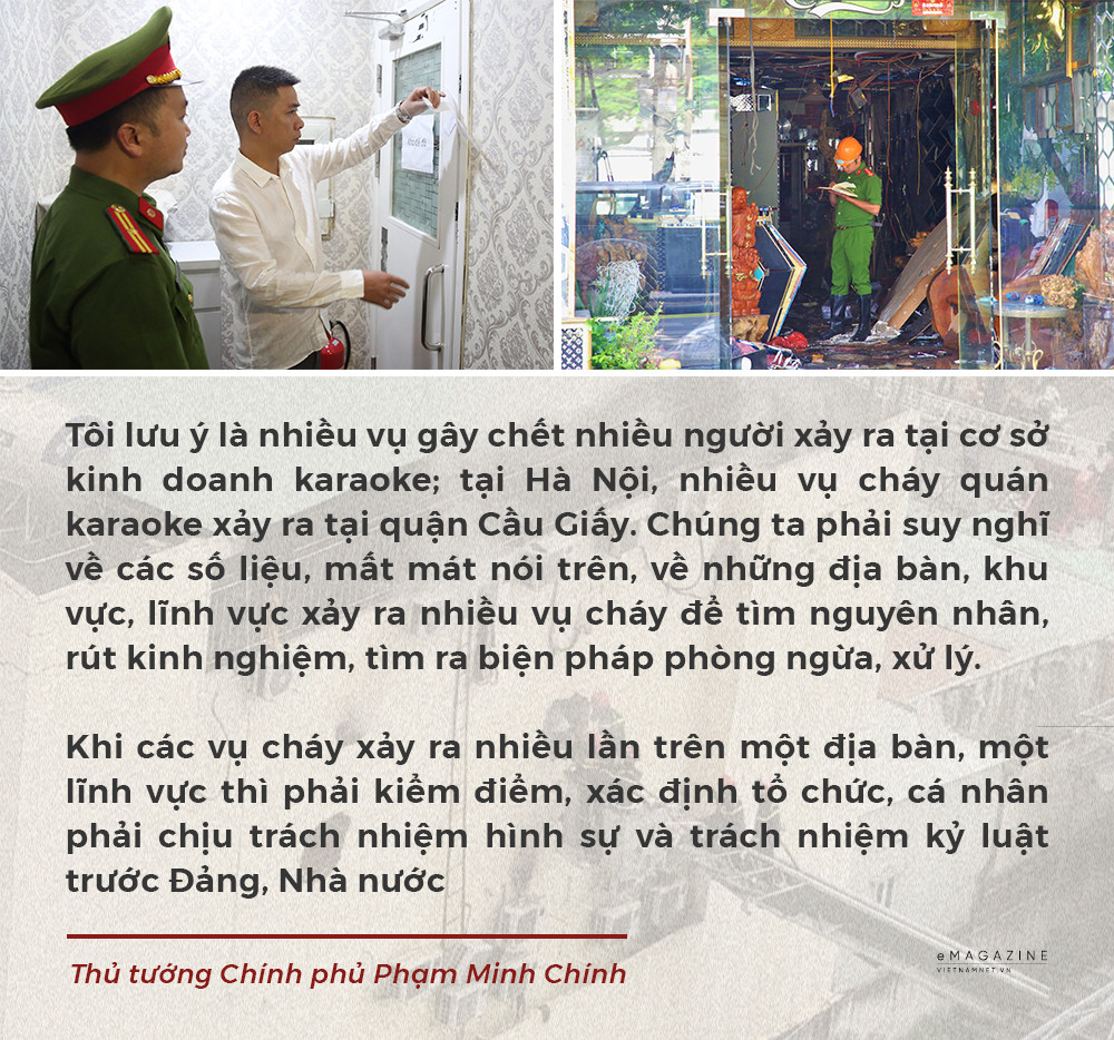 Trước diễn biến phức tạp từ những vụ cháy quán karaoke gây thiệt hại nặng về người, ngày 12/9, Thủ tướng triệu tập phiên họp trực tuyến toàn quốc về công tác phòng cháy, chữa cháy và sơ kết 5 năm thực hiện Nghị định 83 quy định về cứu nạn, cứu hộ của lực lượng Phòng cháy chữa cháy. Tại cuộc họp, Thủ tướng Phạm Minh Chính giao Bộ Công an chủ trì, cùng các địa phương tổng kiểm tra, rà soát toàn quốc về phòng cháy, chữa cháy.