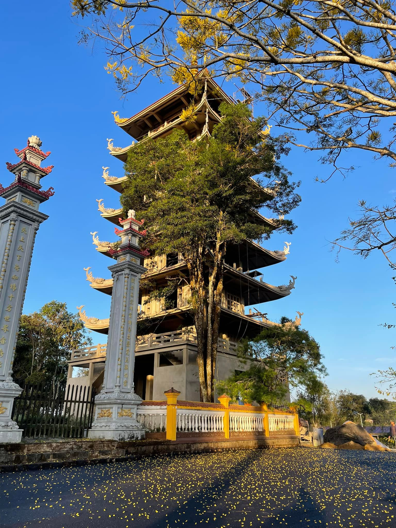 Vào từ tháng 12 đến tháng 4, tại Tu viện Bát Nhã có mùa hoa phượng vàng đẹp rực rỡ cả một góc trời khiến nhiều du khách choáng ngợp.