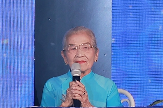 NSƯT Phi Điểu đảm nhận vai trò kết màn cho bộ sưu tập Một thoáng Đồng Viên của NTK Tạ Linh Nhân. Trên sân khấu, diễn viên 91 tuổi gây ấn tượng bởi vẻ phúc hậu, hiền từ. Bà diện tà áo dài xanh với điểm nhấn là phần tay áo cách điệu, sải bước trong tràng pháo tay dài của mọi người.