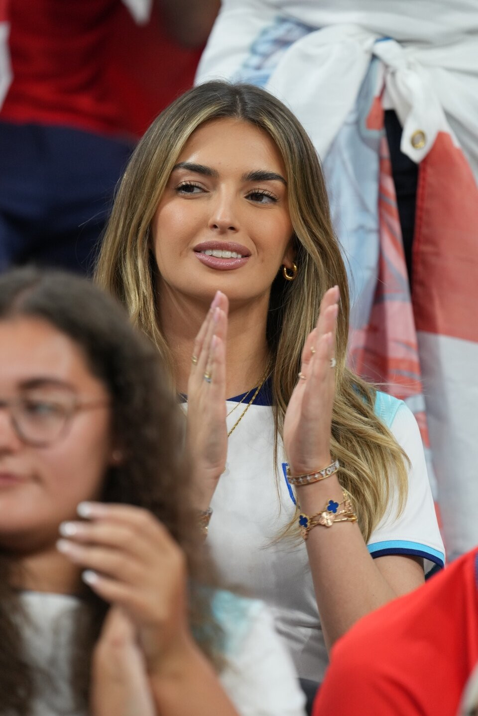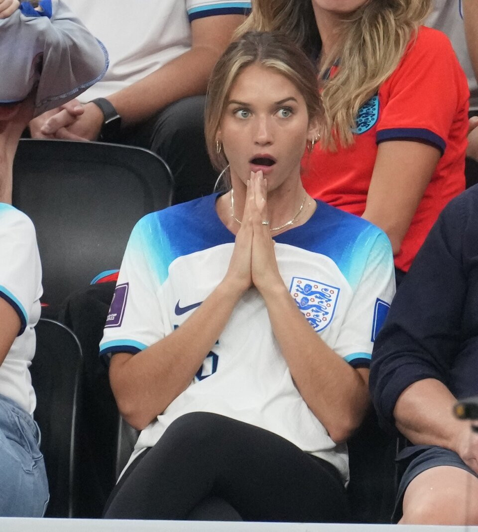 Harry Kane lên khoe danh hiệu Cầu thủ xuất sắc nhất trận với vợ KatieHai người sau đó trao nhau nụ hôn nồng ấmPhil Foden cũng lên khán đài gặp gỡ người thươngConor Gallagher "ghi bàn" dù không ra sân thi đấuBạn gái người mẫu của trung vệ Eric Dier - Anna Modler Biểu cảm của Anna Modler khi Senegal suýt ghi bànNgười yêu Jack Grealish - Sasha Attwood cũng đến sân cổ vũVợ trung vệ Harry Maguire - Fern Hawkins (phải)Người yêu của Phil Foden - Rebecca Cooke (phải)Megan - vợ của thủ thành Jordan PickfordBạn gái của Bukayso Saka và Aaron Ramsdale