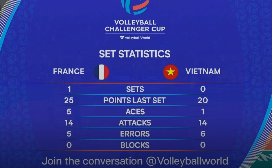 Điểm số quyết định cho chủ nhà Pháp qua đó thắng set khởi đầu với điểm số 25-20.