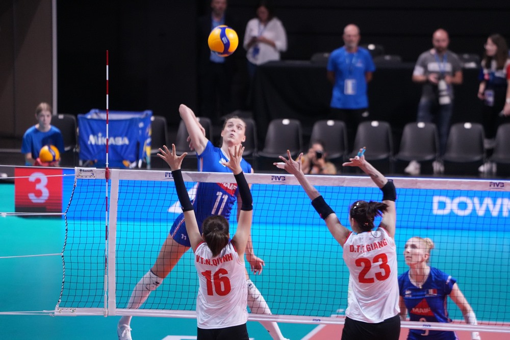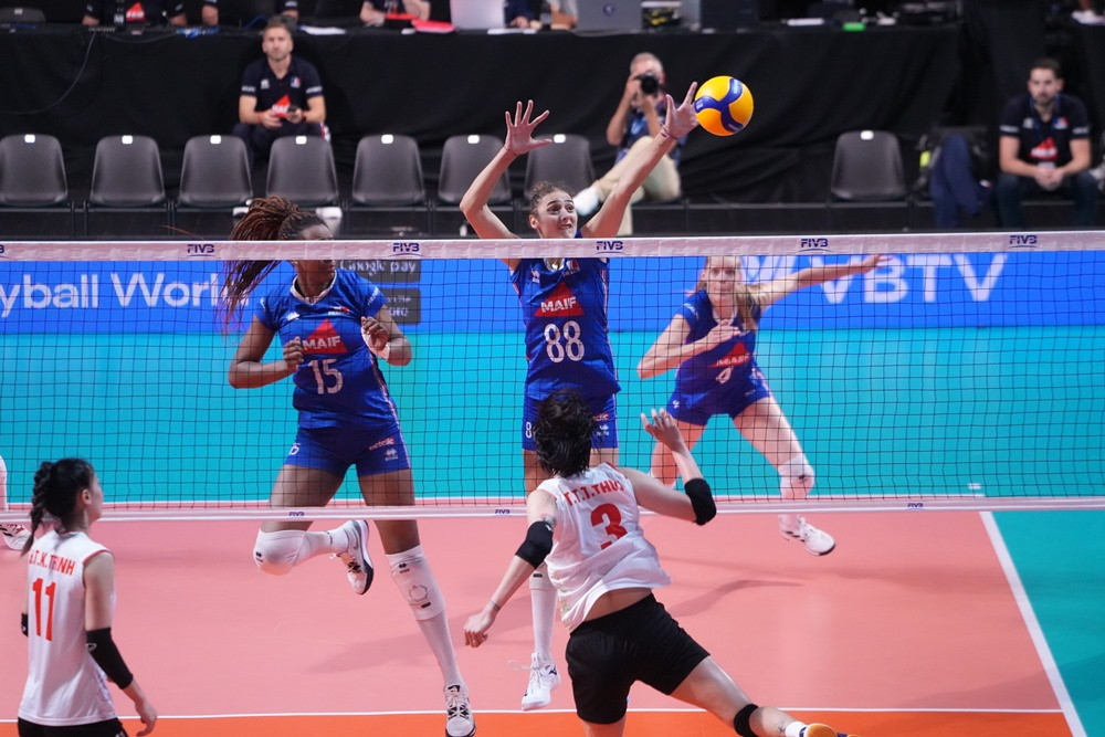 Match point cho ĐT Pháp. Đội tuyển bóng chuyền nữ Việt Nam chơi đầy nỗ lực nhưng vẫn chịu thất bại 0-3 (20-25, 16-25 và 17-25) trước đội chủ nhà ở tứ kết FIVB Challenger Cup 2023.