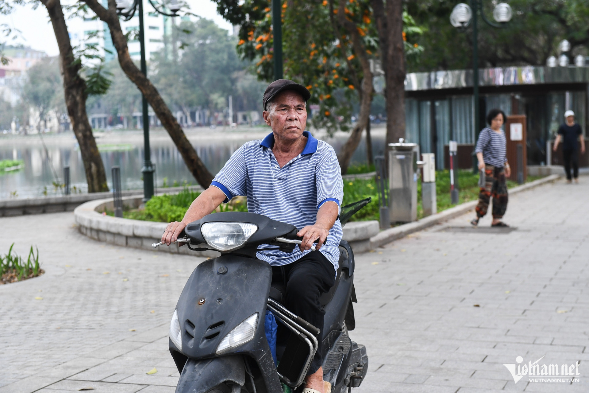 Hai đầu rào chắn, nhiều người ngại đi vòng nên đi thẳng vào khu vực phố đi bộ. Phần lớn trong số họ không đội mũ bảo hiểm.