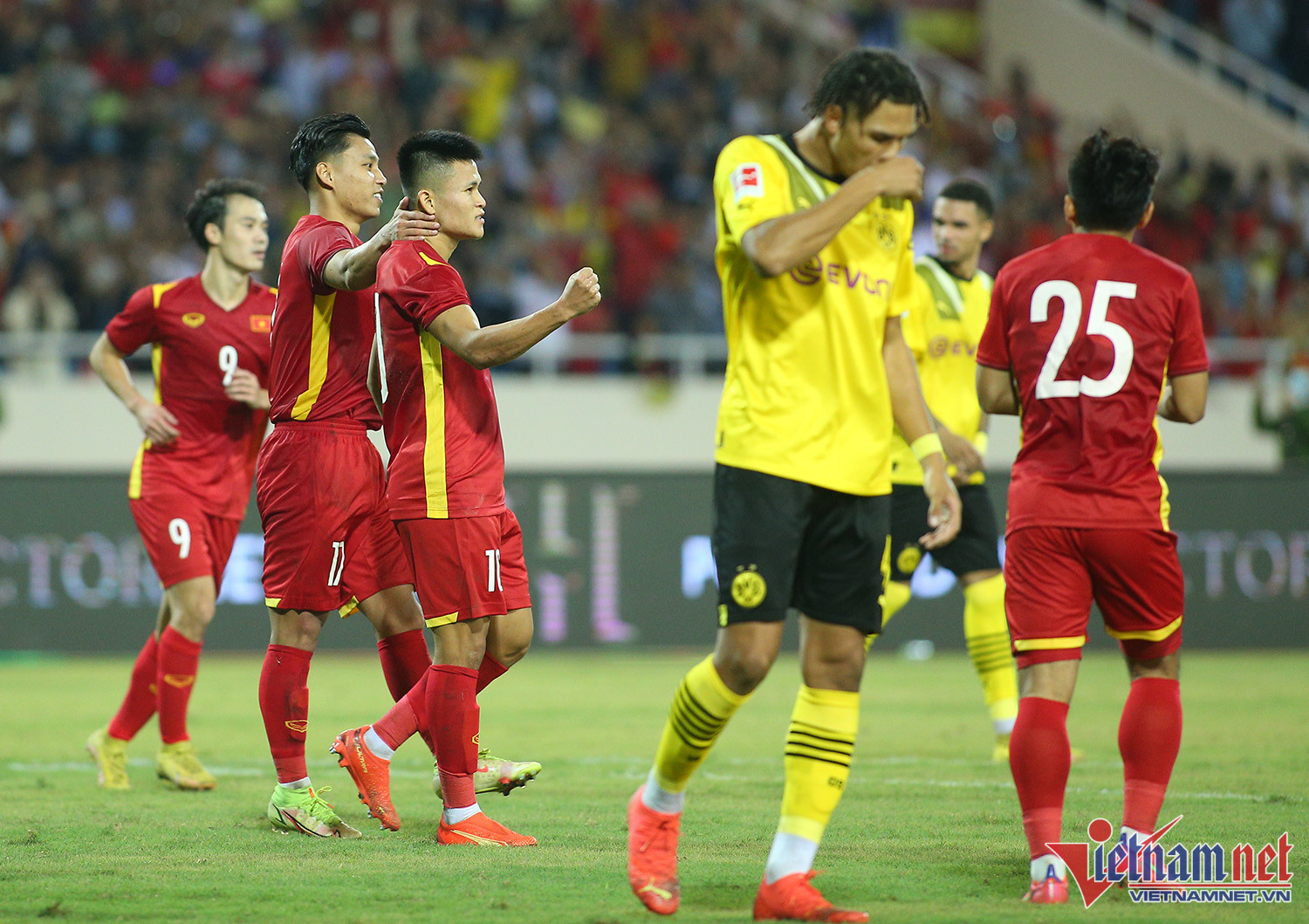 1. Chỉ có không đầy 1 tuần tập trung sau một mùa giải kéo dài chuẩn bị cho trận đấu cũng như xa hơn là AFF Cup 2022, ít người nghĩ tuyển Việt Nam chơi ổn trước Borussia Dortmund.