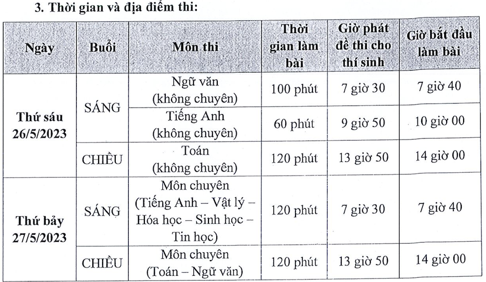 >>> Xem lịch thi tuyển sinh lớp 10 năm 2023 chính thức<<<