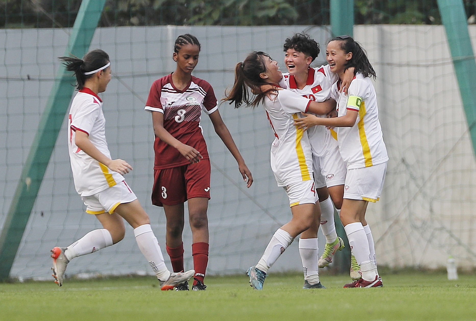 Phút 60, tận dụng sai lầm của hàng thủ U17 nữ Palestine, Nguyễn Thị Quỳnh Anh dứt điểm trái phá bằng chân trái giúp đội nhà dẫn trước đối phương 5-0.