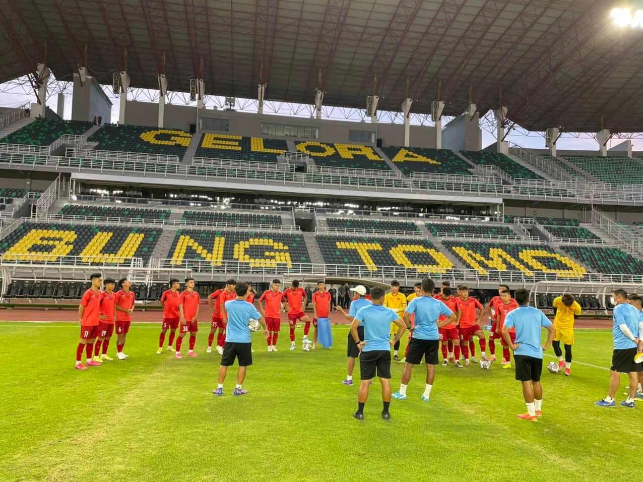 Vấn đề với U20 Việt Nam có lẽ chỉ là vấn đề thích nghi về thời tiết, mặt sân. Trong buổi tập cuối cùng chiều 13/9, HLV Thế Nam và các học trò về cơ bản có cảm nhận về không gian, làm quen với mặt cỏ trên sân chính Gelora Bung Tomo.