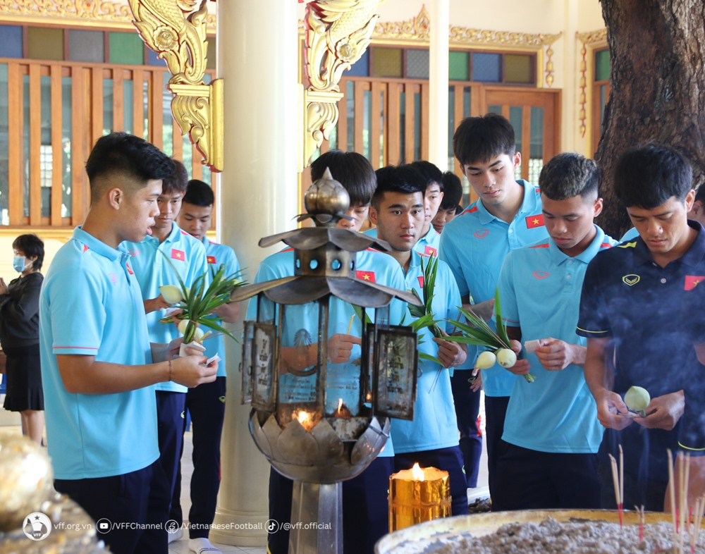 Việc có dịp được hòa mình vào chốn tâm linh trong không gian bình yên, thanh tịnh đã mang lại những giá trị tinh thần tích cực cho thầy trò HLV Hoàng Anh Tuấn, cùng nhau hướng đến những điều tốt đẹp, thuận buồm xuôi gió trong những ngày tranh tài tại Thái Lan.