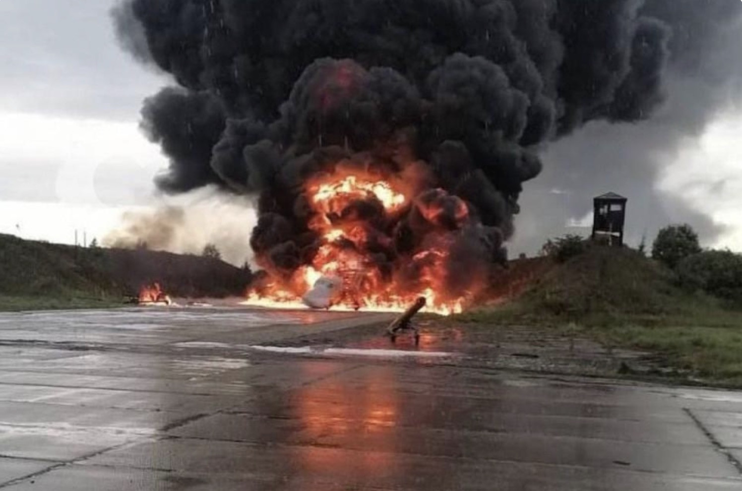 Theo 9News và hãng tin BBC, những hình ảnh đăng tải trên mạng xã hội và được cố vấn Bộ Nội vụ Ukraine Anton Geraschenko chia sẻ cho thấy, máy bay bị lửa bao trùm tại căn cứ quân sự trên.