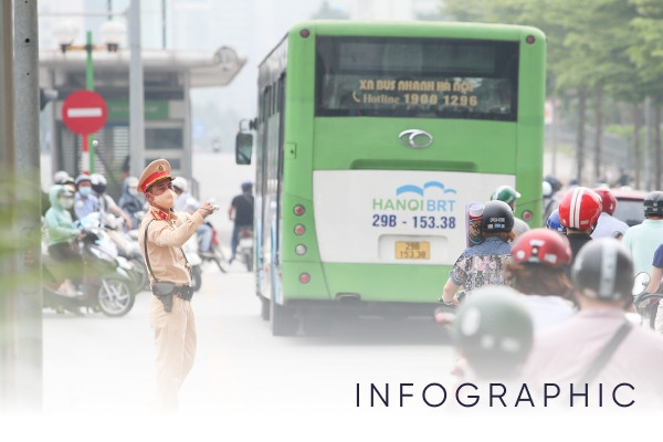 Vài năm qua, Hà Nội dành một làn đường riêng, phục vụ xe buýt nhanh (làn BRT). Thế nhưng, thực tế là, vào giờ cao điểm, xe buýt nhanh cũng không thể nhanh như kỳ vọng, thậm chí bị chặn đầu, khóa đuôi bởi xe máy, ô tô.