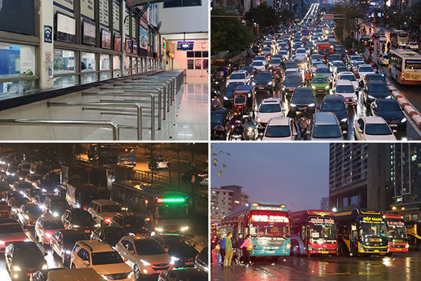 Không còn cảnh kẹt xe, hối hả đua nhau về quê ăn Tết như mọi năm, các bến xe vắng chưa từng thấy. Trong khi đó, một số tuyến đường nội đô vẫn ùn tắc cục bộ do người dân đi sắm Tết.