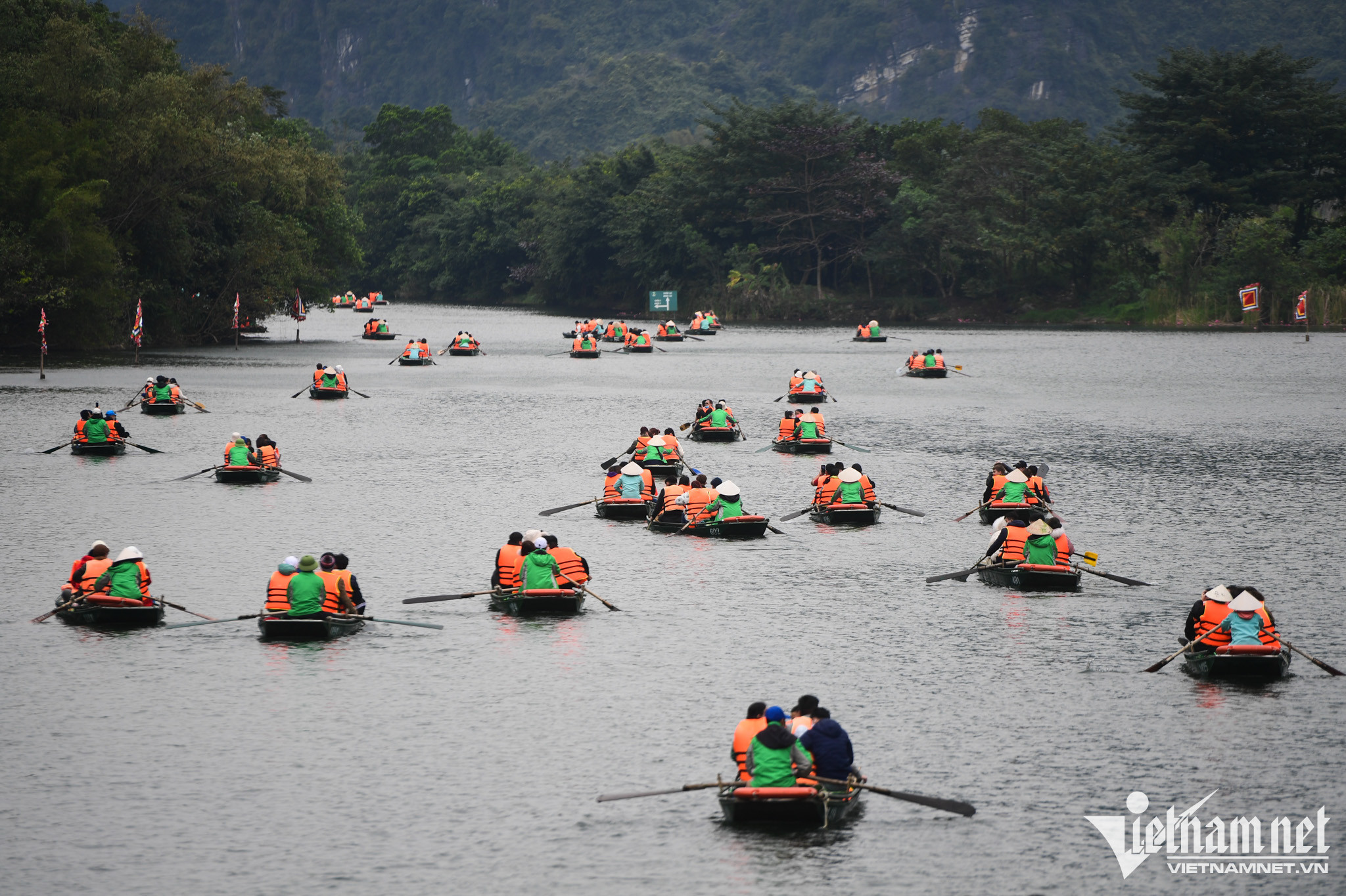 Sáng mùng 3 Tết, Khu du lịch sinh thái Tràng An đón lượng lớn du khách trong và ngoài tỉnh tới tham quan vãn cảnh đầu năm.