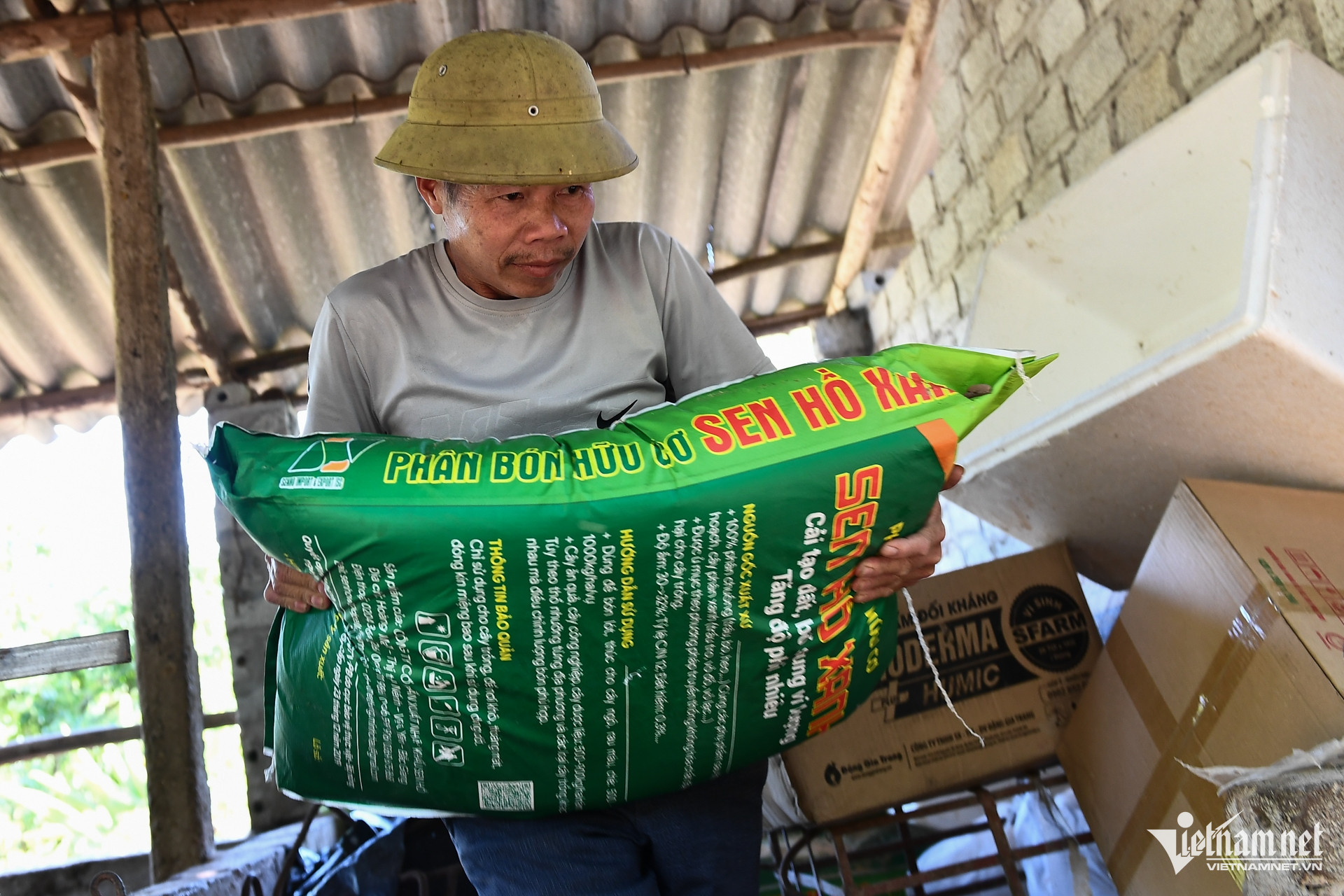 Ngoài việc dọn cỏ, tỉa cành thường xuyên, anh Hùng sử dụng phân bón hữu cơ có kiểm định cho cây trồng nhà mình.
