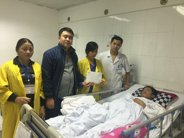 Chị ngồi bần thần bên giường bệnh, ai đến hỏi thăm, chị cũng không cầm được nước mắt. Chồng bị gãy 2 đốt sống cổ, nếu không phẫu thuật để lâu có thể nguy hiểm tính mạng hoặc liệt tứ chi.